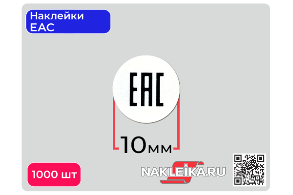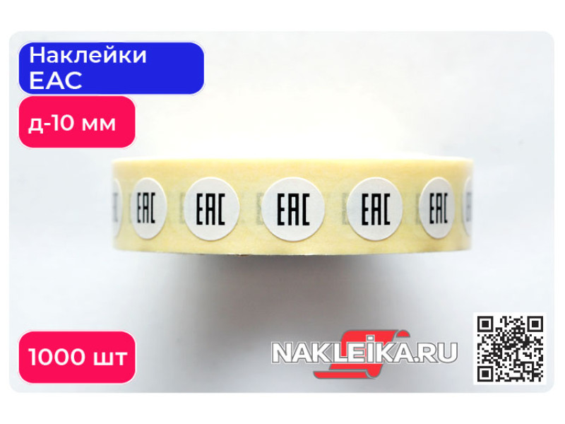 Наклейки со знаком ЕАС (Eurasian Conformity) диаметром 10 мм — официальный элемент маркировки, подтверждающий соответствие продукции требованиям технических регламентов Евразийского экономического союза (ЕАЭС). В наличии на складе — можно заказать оптом или купить онлайн и получить в кратчайшие сроки!