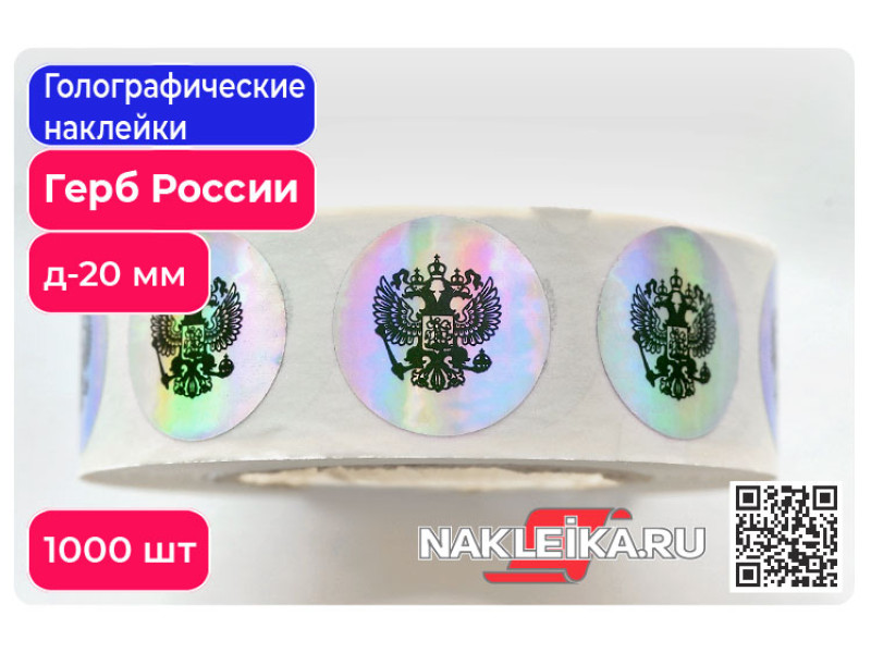 Голографические наклейки с Гербом России, Ø 20 мм: экономичное решение для официальной маркировки