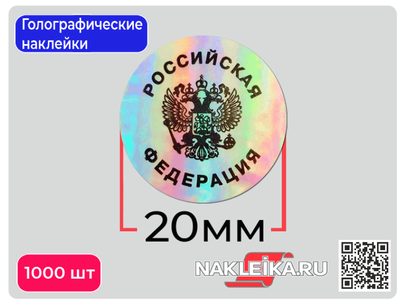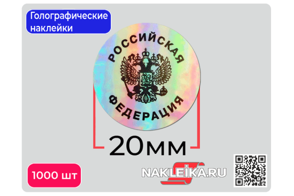 Закажите голографические наклейки с Гербом и надписью «Российская Федерация» прямо сейчас — обеспечьте официальную защиту документов и продукции по выгодной цене!