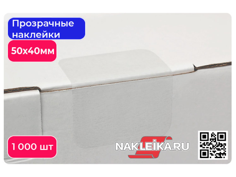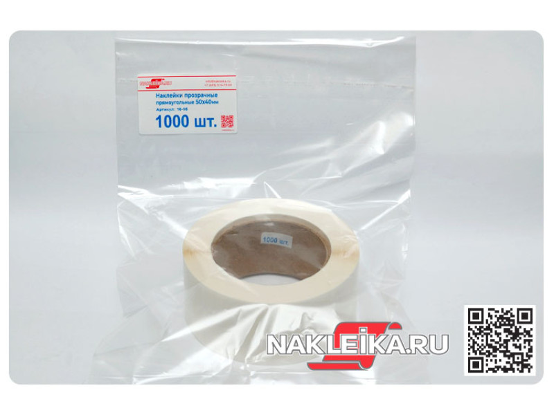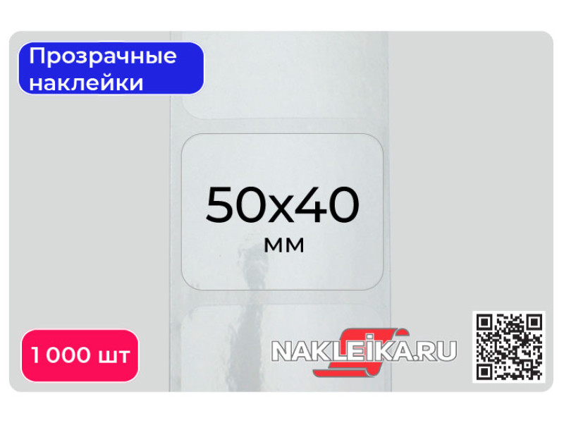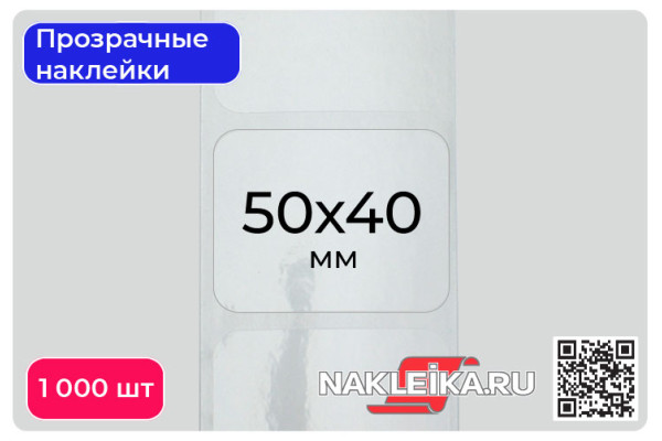 Наклейки прозрачные прямоугольные 50х40 мм, 1000 шт./РУЛ.