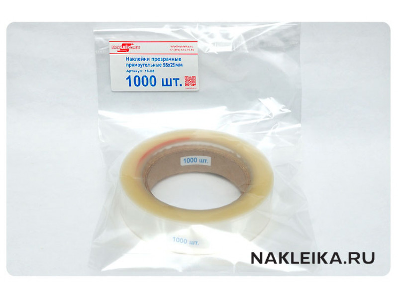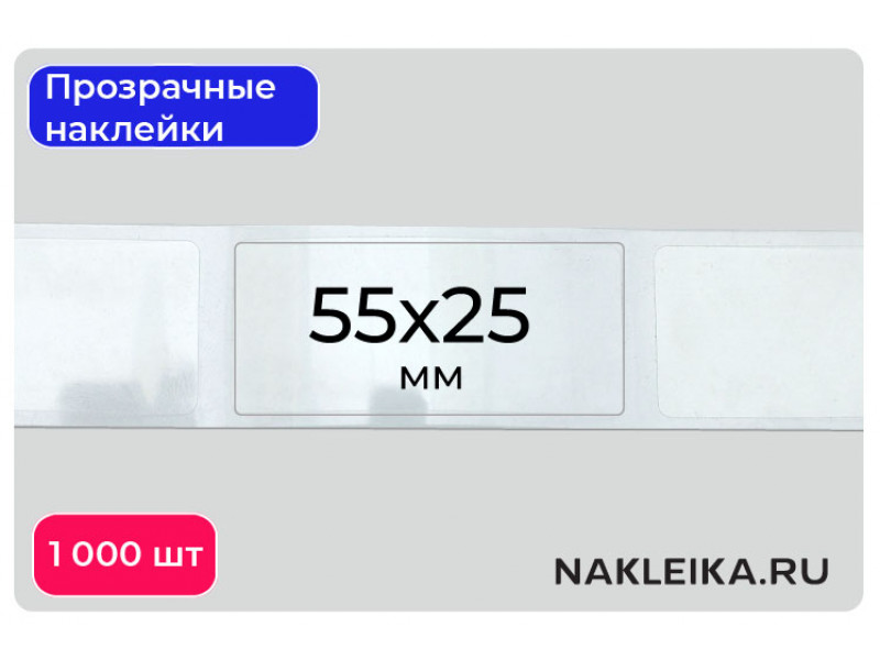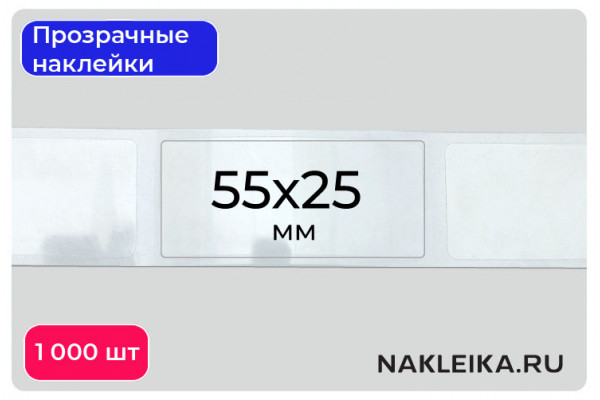 Наклейки прозрачные прямоугольные 55х25 мм, 1000 шт./РУЛ.