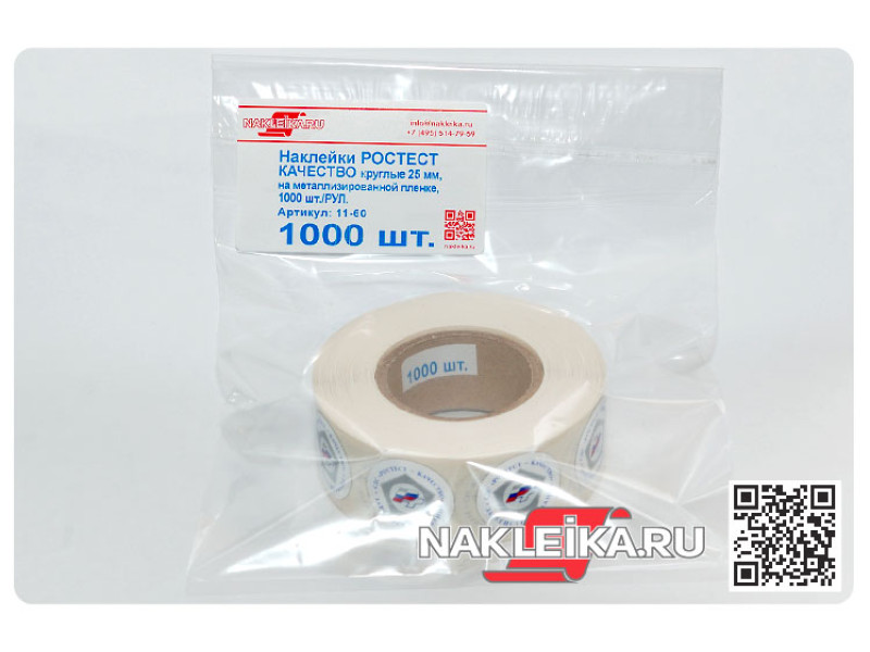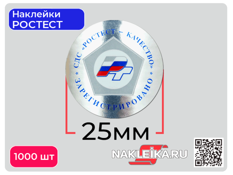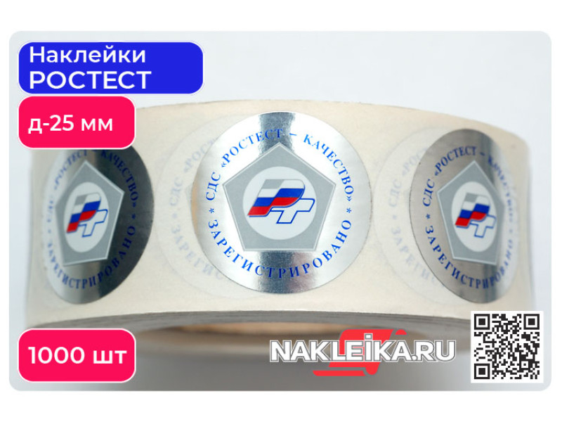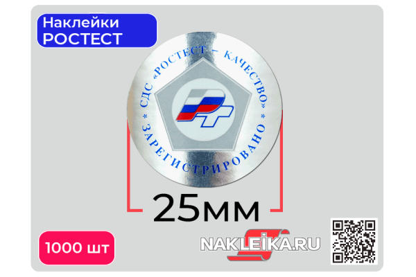 Наклейки РСТ «Качество Зарегистрировано» круглые 25 мм, на металлизированной пленке, 1000 шт./РУЛ.